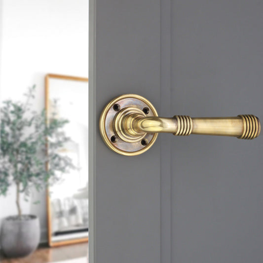 BEEHIVE LEVER ON ROSE AGED BRASS