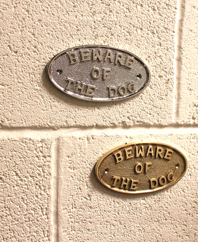 BEWARE OF THE DOG DOOR PLATE POLISHED BRASS