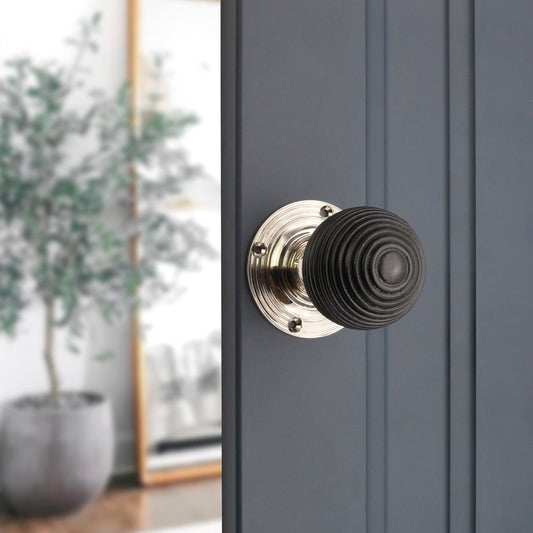 EBONISED WOOD BEEHIVE MORTICE/RIM DOOR KNOB POLISHED NICKEL