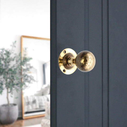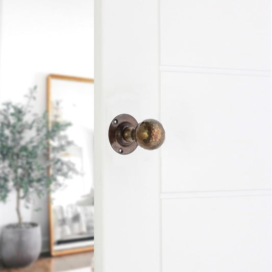 GEHÄMMERTER KUGEL-TÜRKNAUF AUS GEALTERTEM MESSING