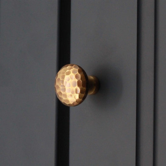 GEHÄMMERTER PILZ-SCHRANKKNOPF, 32 MM, GEALTERTES MESSING