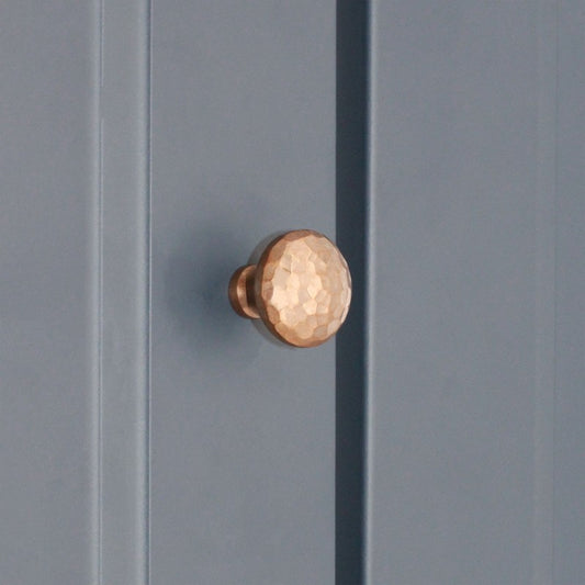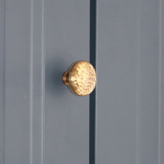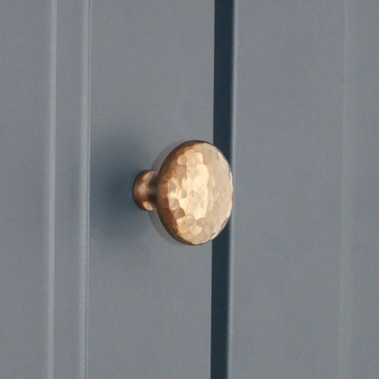 GEHÄMMERTER PILZ-SCHRANKKNOPF, 38 MM, GEALTERTES MESSING