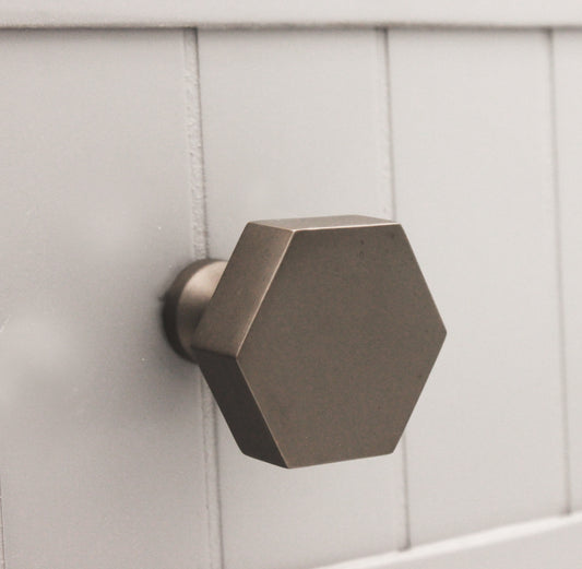 SECHSECKIGER SCHRANKKNOPF AUS SATINIERTEM MESSING