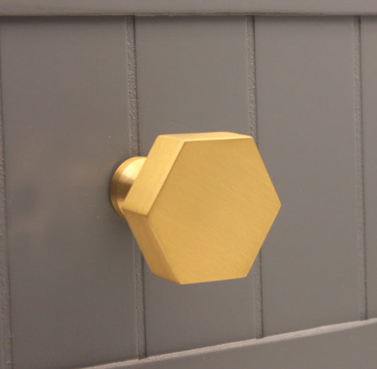 SECHSECKIGER SCHRANKKNOPF AUS SATINIERTEM MESSING
