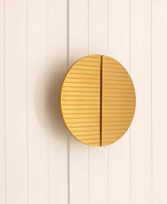 Unsere moderne Konstruktion aus gebürstetem, massivem Messing mit halbmondförmigen Schrankgriffen mit „ Streifenmuster “ bilden nach dem Zusammensetzen einen vollständigen Kreis und bringen Luxus in jedes Zuhause.