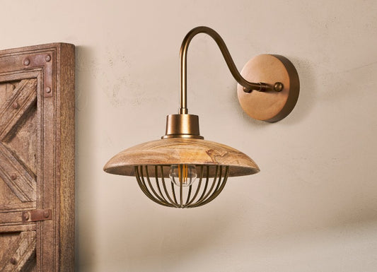CHAKAI MANGO WOOD WALL LAMP - NATURAL & ANTIQUE BRASS