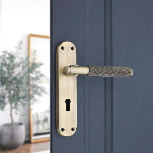 CONNAUGHT LEVIER MOLETÉ SUR SERRURE À PLAQUE ARRIÈRE LAITON SATINÉ