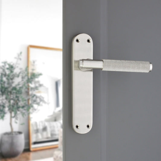 CONNAUGHT LEVIER MOLETÉ SUR SERRURE À PLAQUE ARRIÈRE NICKEL SATINÉ
