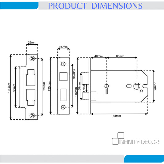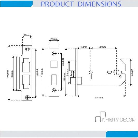 SERRURE DORMANTE À 3 LEVIERS CE 3" - NICKEL NOIR