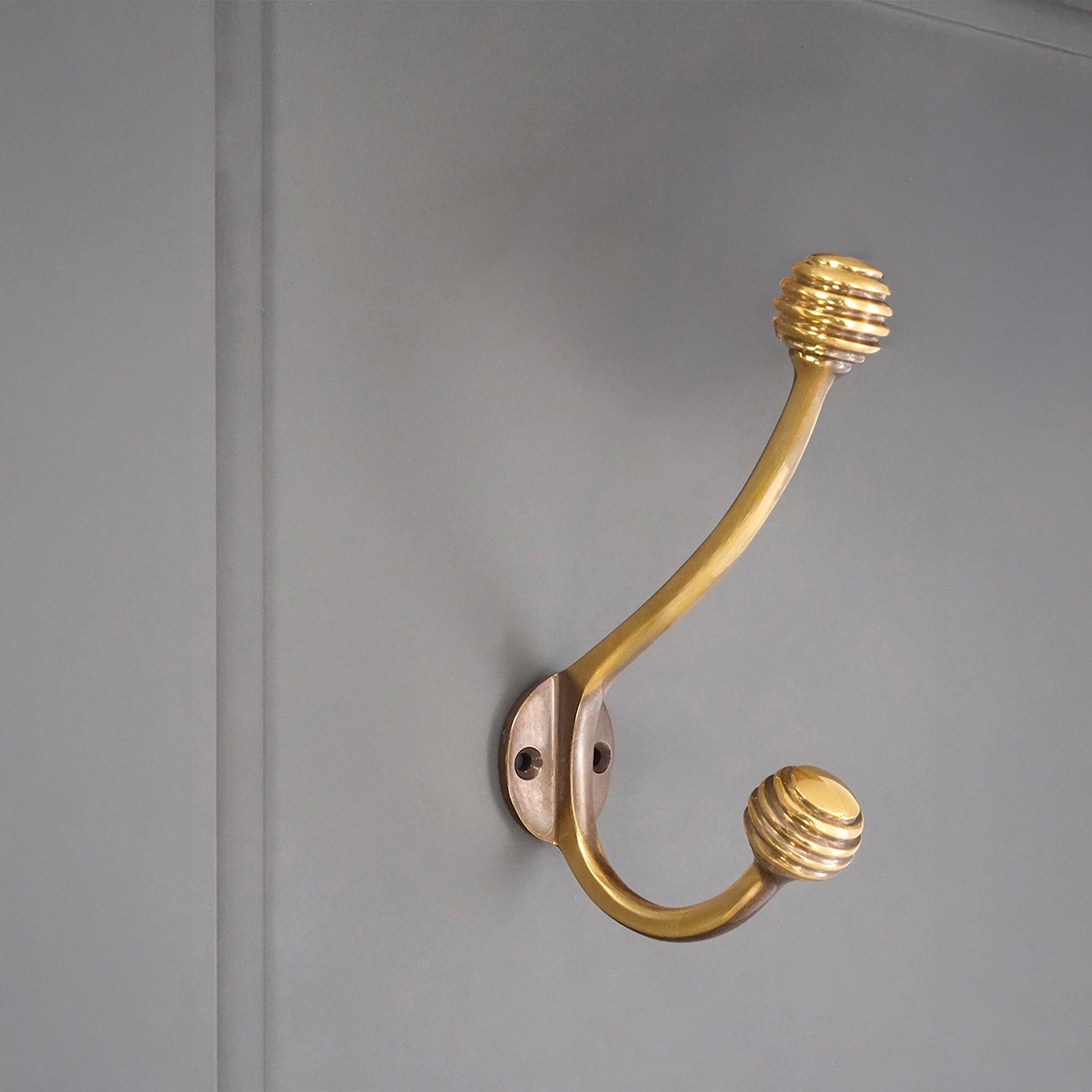 CROCHET DOUBLE EN LAITON VIEILLI EN FORME DE RUCHE