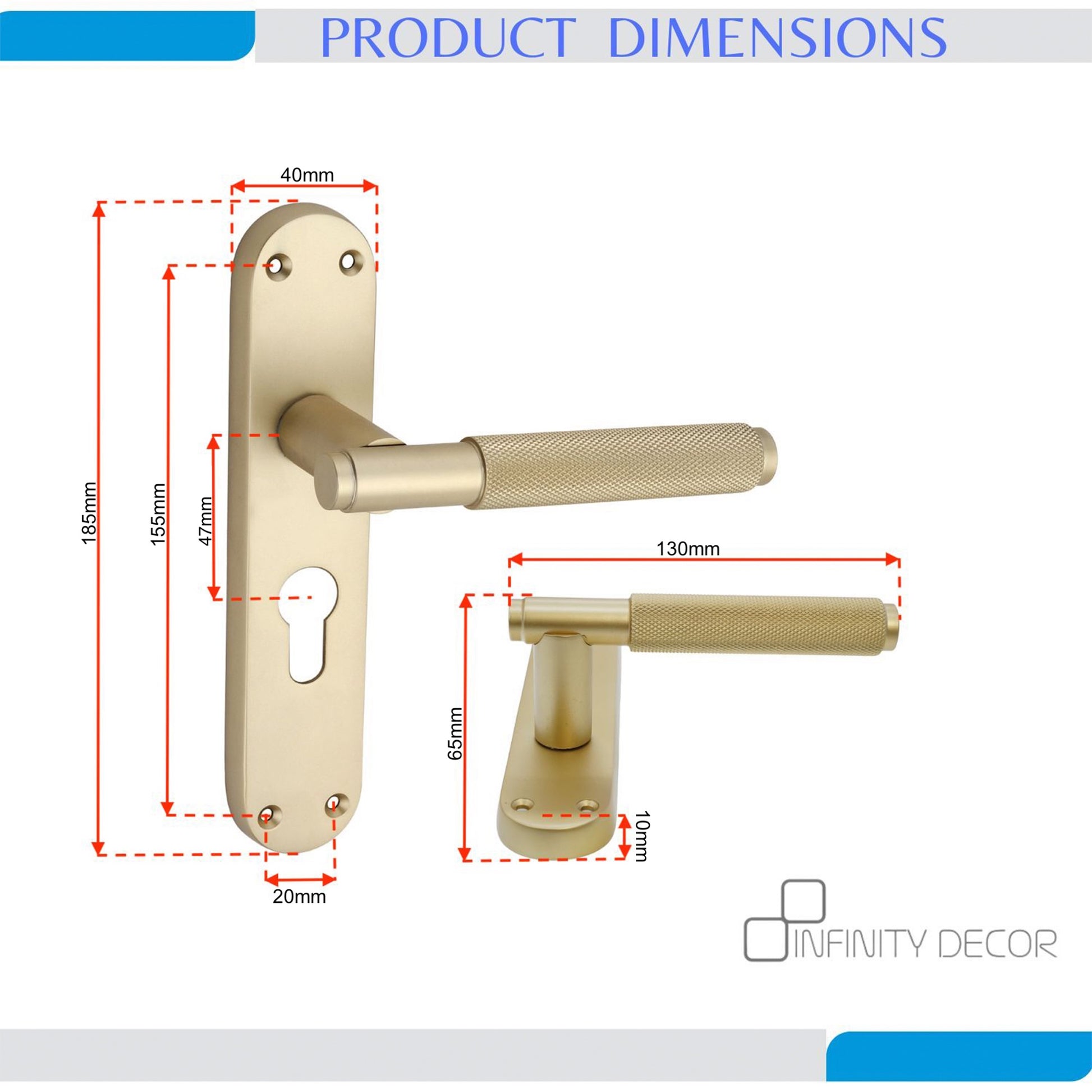 Nos poignées de porte intérieures « Connaught » de style contemporain, jumelées sur une plaque arrière en forme de ressort, présentent un design moleté confortable et tactile avec un design de poignée à levier droit. Celui-ci peut être utilisé seul, pour les portes de passage ordinaires, avec une serrure à guillotine, une serrure Euro ou une serrure de salle de bain si la sécurité/la confidentialité est requise.