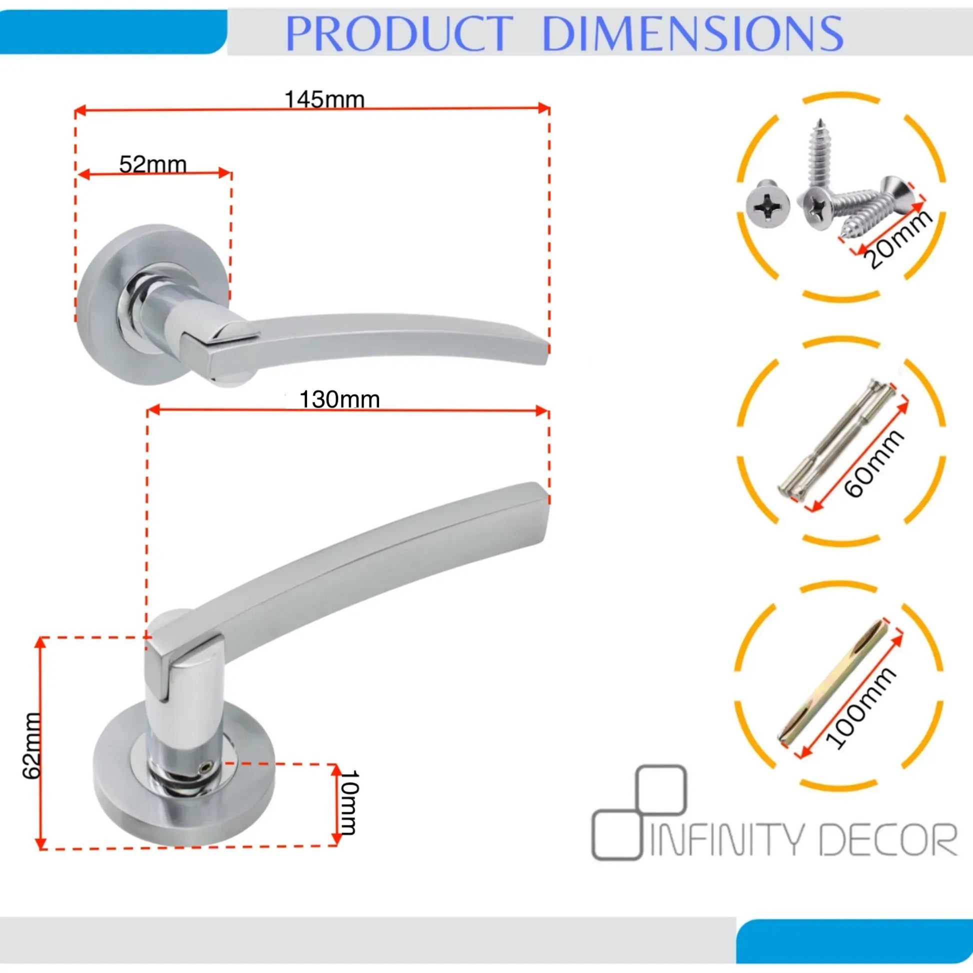This premium Carol door handle bath pack in a dual tone finish offers a comprehensive solution for internal doors by combining privacy and style. Each pack comes with a pair of door handles with a 2.5" mortice bathroom lock, 3" butt hinges pair and a thumb turn set. It can be used in any internal doors in a residential or commercial space where privacy is needed.