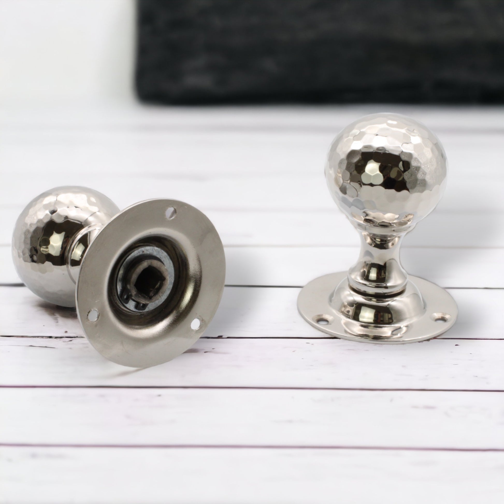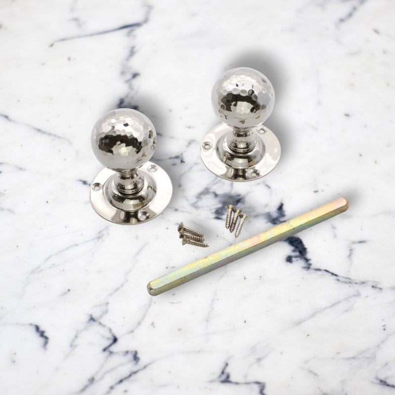 HAMMERED BALL MORTICE DOOR KNOB POLISHED NICKEL