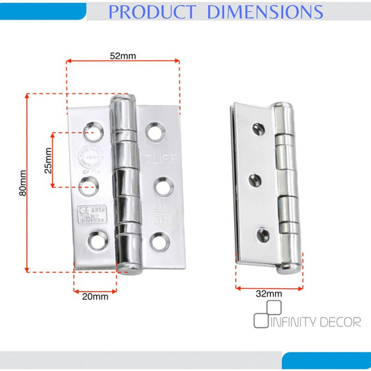 CE7 MILD STEEL BB BUTT HINGE - POLISHED CHROME