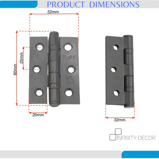 CE7 MILD STEEL BB BUTT HINGE - GUNMETAL GREY