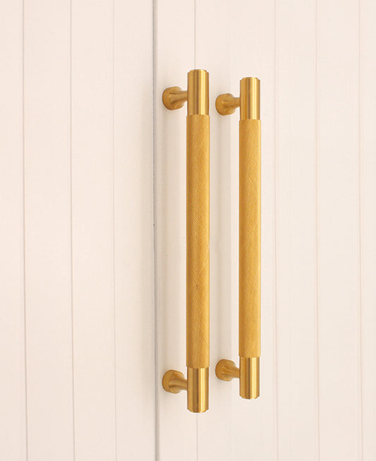 KNURLED BAR HANDLES MEDIUM SATIN BRASS