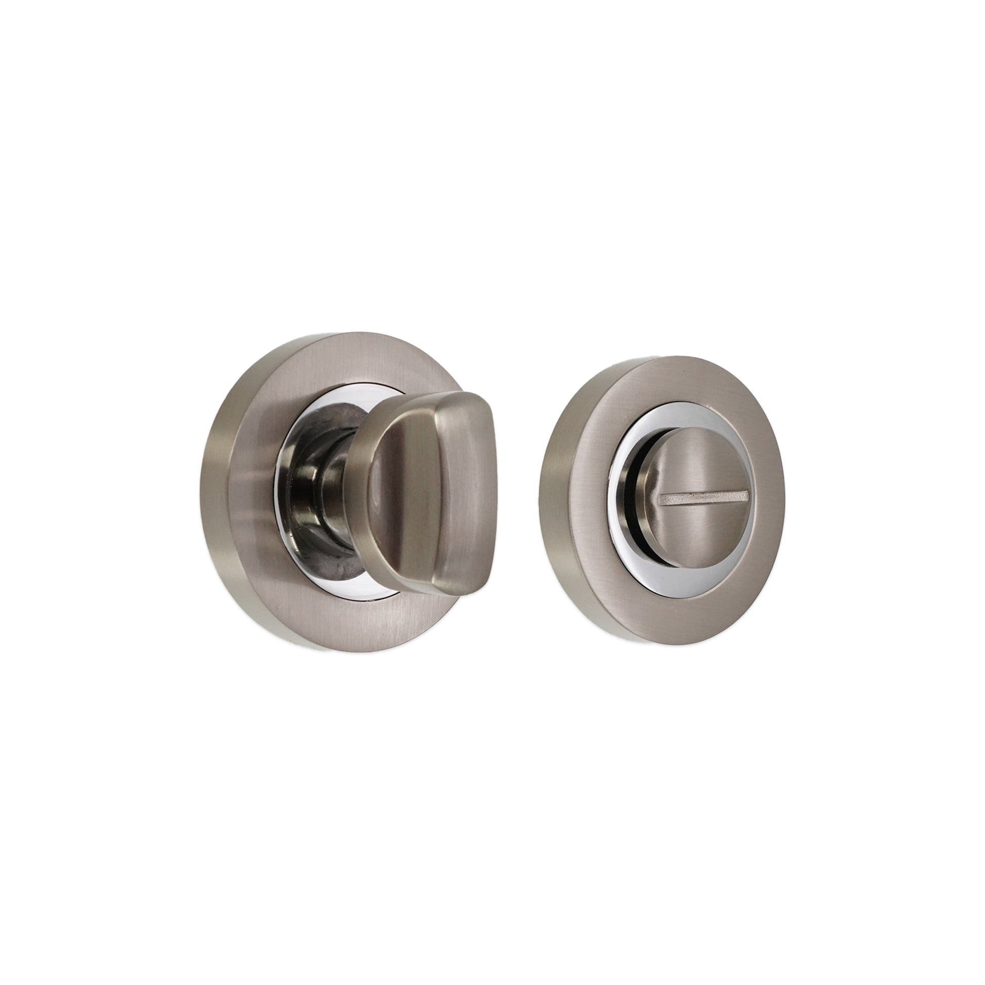 This premium Mercury door handle bath pack in a dual tone finish offers a comprehensive solution for internal doors by combining privacy and style. Each pack comes with a pair of door handles with a 2.5" mortice bathroom lock, 3" butt hinges pair and a thumb turn set. It can be used in any internal doors in a residential or commercial space where privacy is needed.