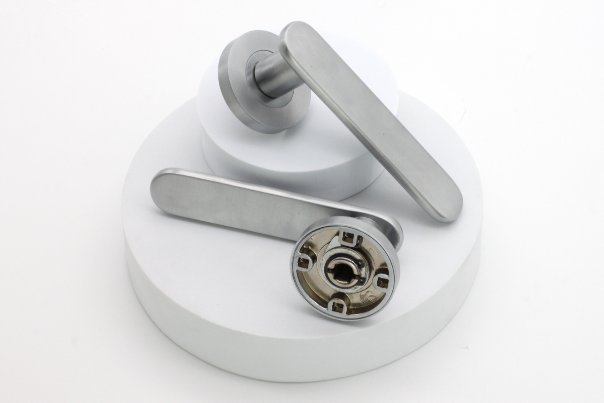 SKYLA LEVER ON ROSE SATIN CHROME LOCK PACK